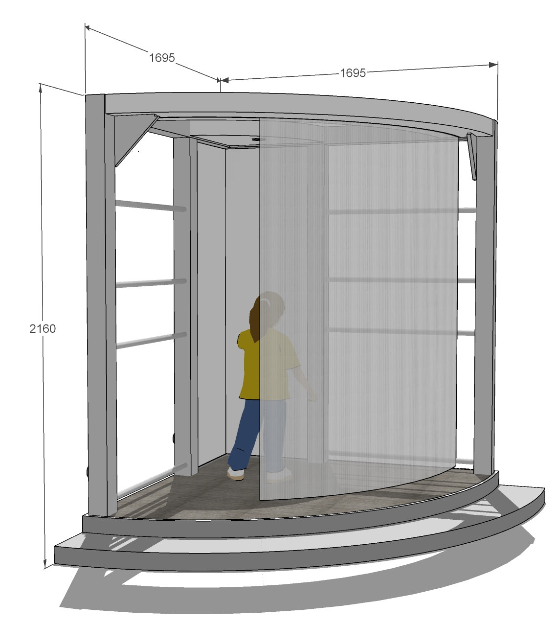 Die Idee ist die Funktion als Lichtbühne für Schattenspiele und Turnstangen für kleine Ballarinas im Eckspiegel.